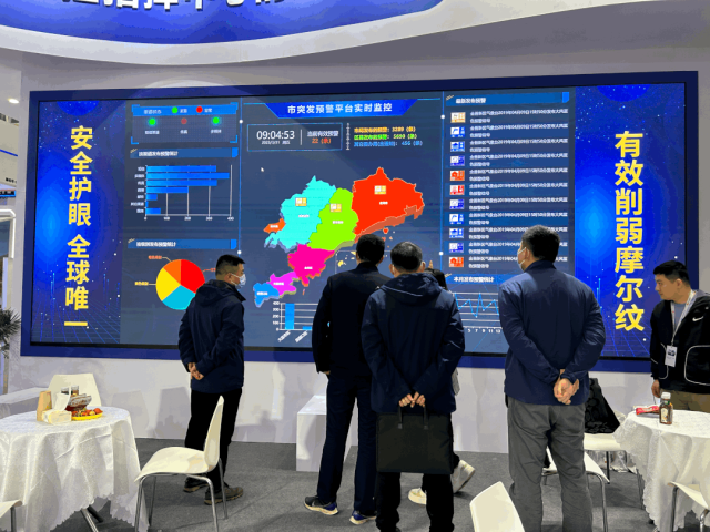 本次展會上玻顯投影以其出色的顯示效果,完整呈現(xiàn)了可視化智慧運(yùn)營平臺強(qiáng)大而壯觀的數(shù)據(jù)化功能及監(jiān)控畫面,并同時呈現(xiàn)了令人沉醉的沉浸式影音播放效果。